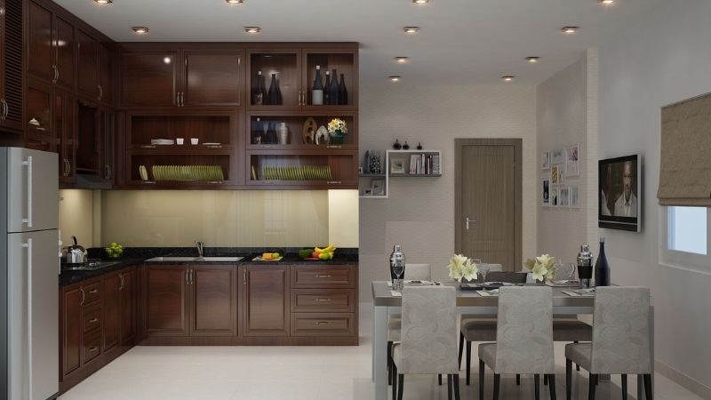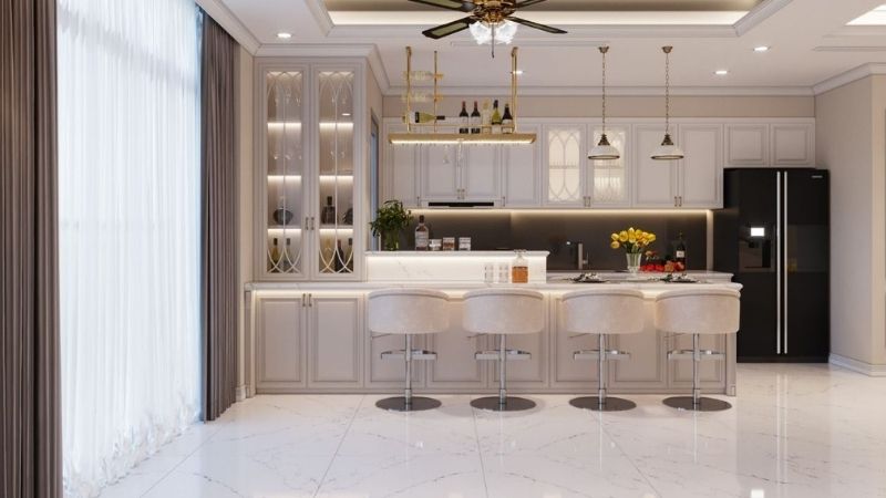 Kiểu thiết kế tủ bếp chữ L bếp phong cách tân cổ điển sang trọng