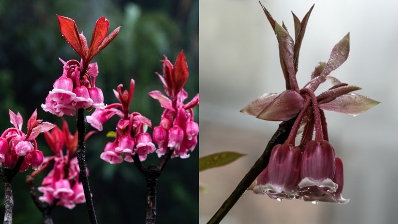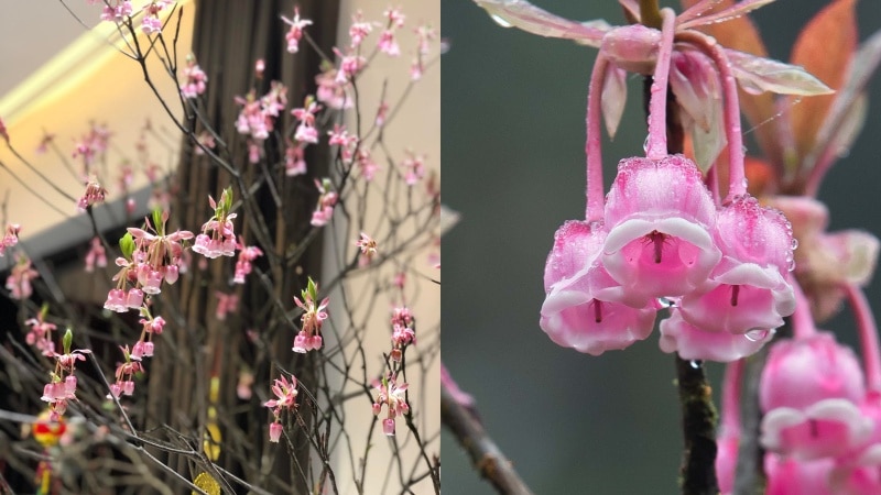 Đây là loại cây tiểu mộc, cao dưới 5m, có lá nhỏ hình elip và nhánh yếu. Hoa của cây có hai màu trắng và hồng, hình dạng như những chiếc chuông nhỏ treo trên cành cây, rất dễ thương.