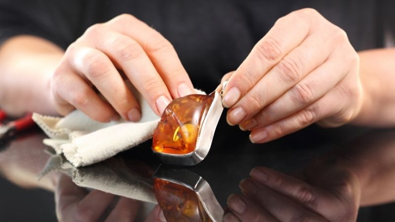 Tránh làm sạch hổ phách bằng hơi nước hoặc quá trình siêu âm vì có thể làm hổ phách dễ vỡ hơn. Thay vào đó, hãy sử dụng nước ấm kết hợp với xà phòng nhẹ và rửa nhẹ bằng tay, sau đó lau khô bằng khăn mềm.
