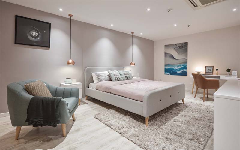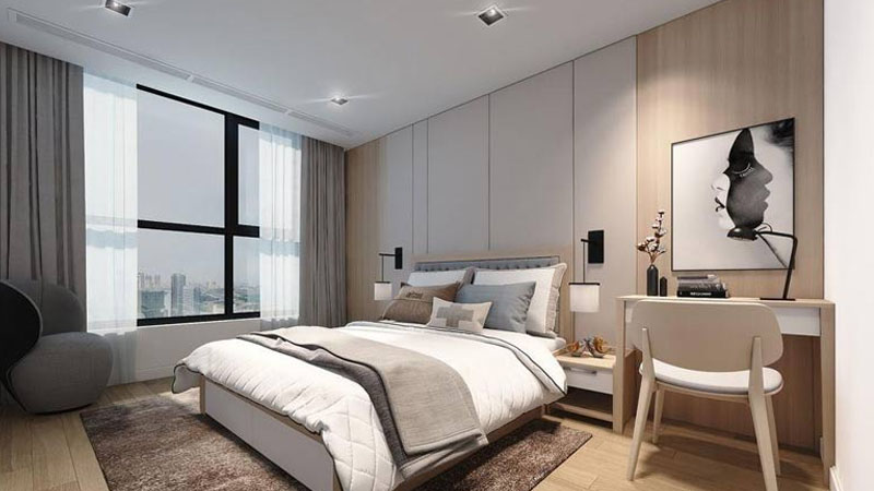 Nội thất phòng ngủ cho người mệnh Kim cũng cần lựa chọn màu sắc phù hợp với bản mệnh, tương đồng với gam màu tổng thể của căn phòng để tạo sự cân đối.