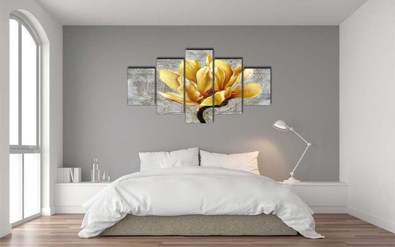 Tranh hoa lá theo nguyên lý ngũ hành Kim: Người mệnh Kim thích hợp với tranh vẽ hoa lá sử dụng màu trắng, nâu đất, vàng, như hoa lan màu trắng tươi, hoa sen hồng,…