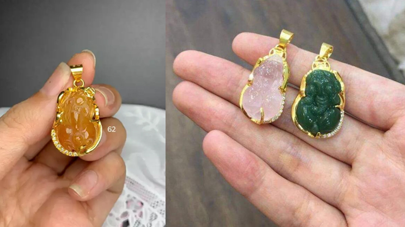 Chất liệu: Bạn có thể lựa chọn mặt dây chuyền làm bằng ngọc, hoặc kim loại vàng bạc.
