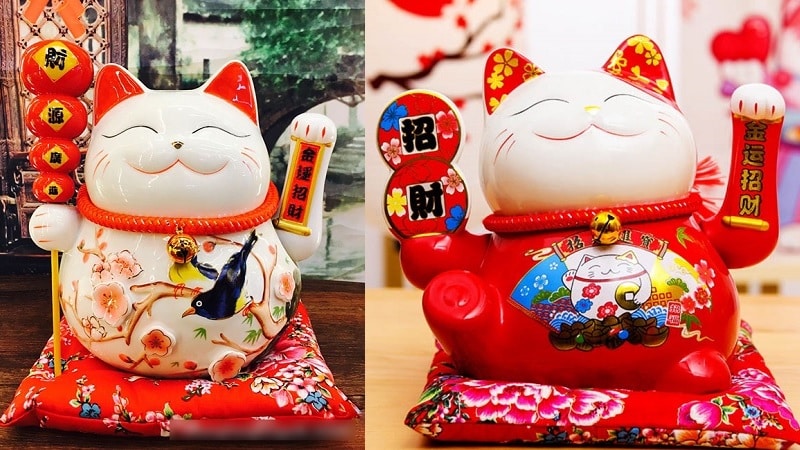 Hơn nữa, thỏi vàng hoặc chuông mà chú mèo ôm trước ngực biểu thị việc mời gọi nhân duyên, tài lộc và sự may mắn…